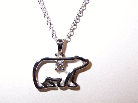 Back Silver 1 x Canadian diamond polar bear pendant on 16+2 cable necklace with spring ring clasp. MSRP: $195 SKU: NEC4444-11 Share on Twitter Share on PinterestShare on FacebookShare: Reserve in Store name email phone Preferred Method of Contact email phone Reserve
