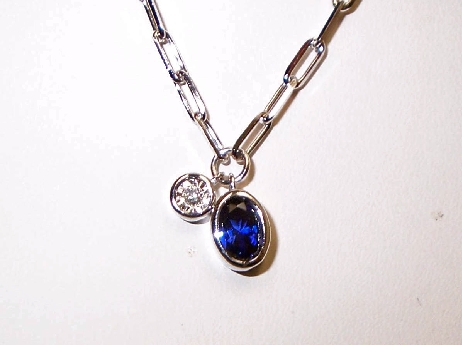 Back Silver Created Sapphire & Lab Diamond paperclip necklace SKU: NEC5233 Share on Twitter Share on PinterestShare on FacebookShare: Reserve in Store name email phone Preferred Method of Contact email phone Reserve