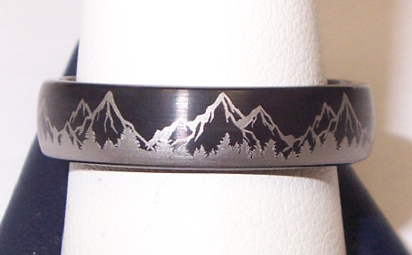 Back Tungsten blackened ring 6 mm with Mountain detail SKU: RIN5709-01 Share on Twitter Share on PinterestShare on FacebookShare: Reserve in Store name email phone Preferred Method of Contact email phone Reserve